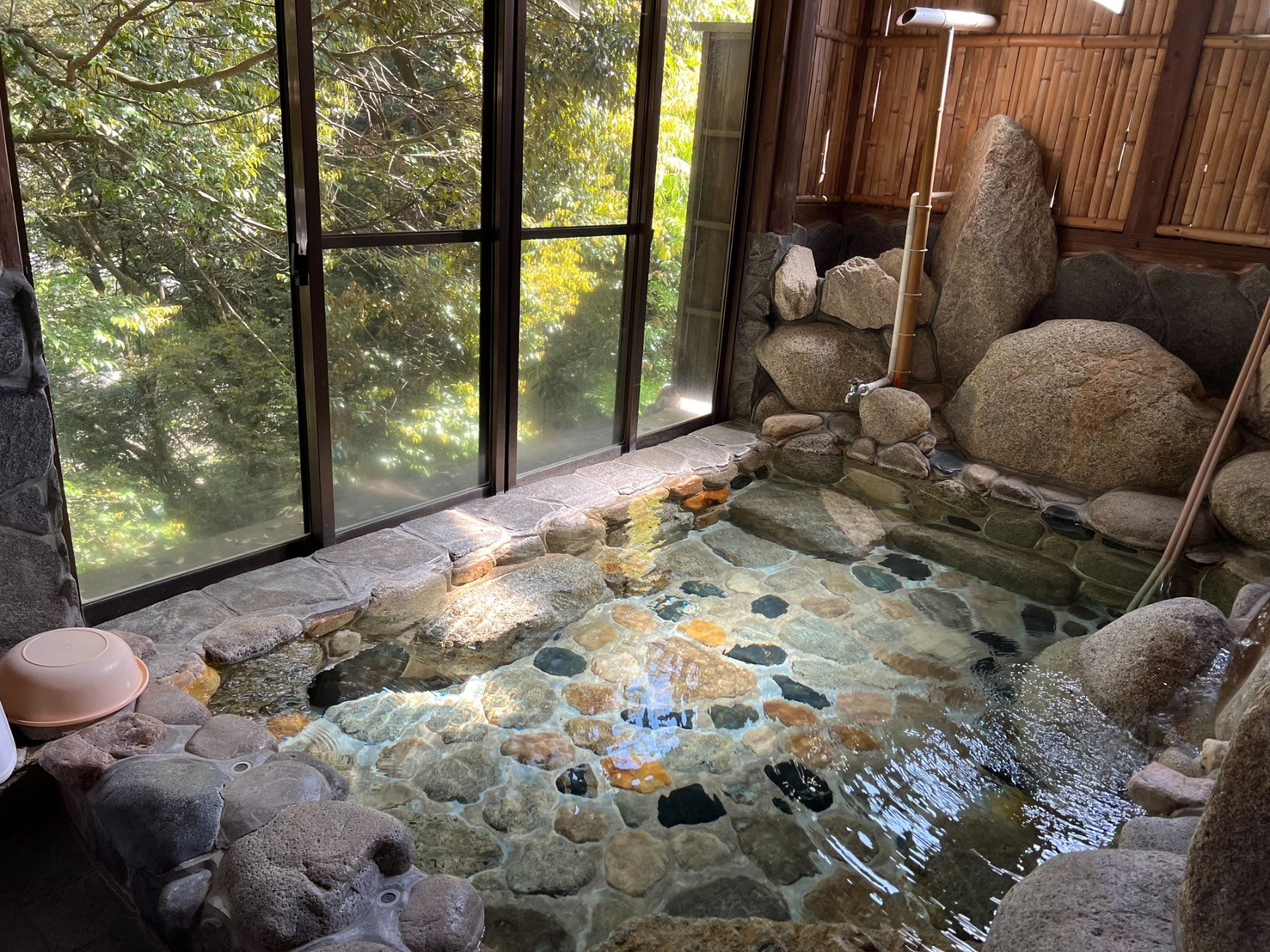屋内の岩風呂は、露天風呂に比べてプライバシーが確保されており、ゆったりとした時間を過ごすのに最適です。周囲の視線を気にせず、心からリラックスできます。